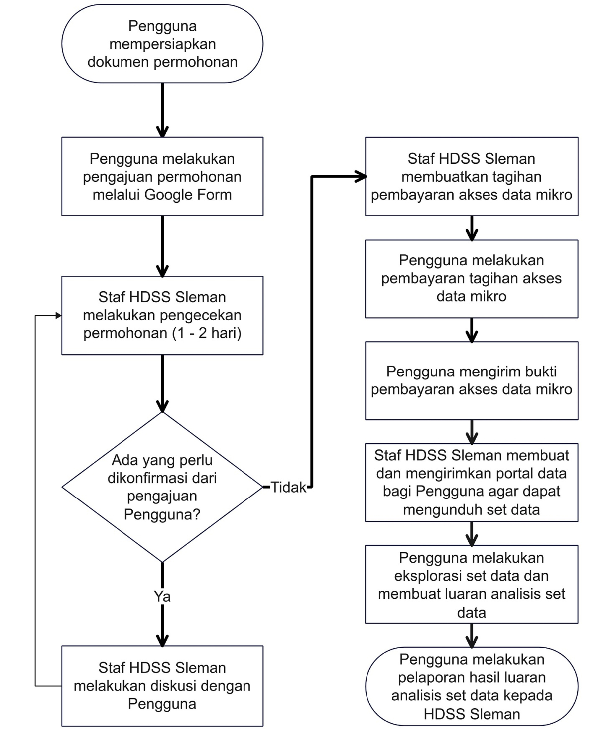 Pengumpulan data HDSS Sleman yang dilakukan hampir setiap tahun memberikan kesempatan luas bagi civitas akademika untuk memanfaatkan data tersebut. Data HDSS Sleman dapat diakses dengan skema berikut: