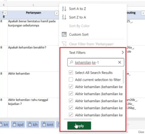 Untuk menggunakan AutoFilters, cukup pilih nilai dari daftar atau cari kata kunci yang Anda inginkan dalam kotak pencarian.